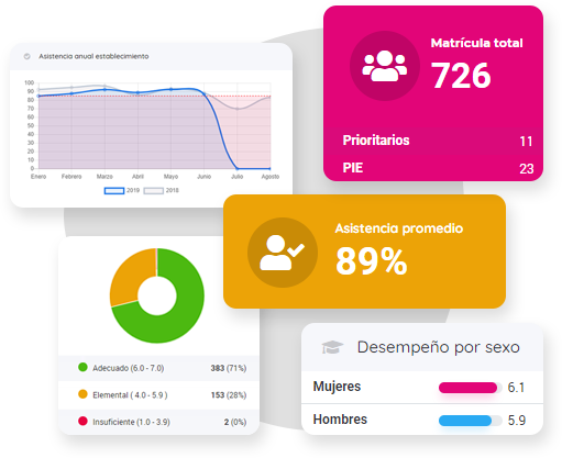 Nuestro sistema reduce la carga laboral de profesores y funcionarios, gracias a herramientas de gestión de diseño simple y amigable.